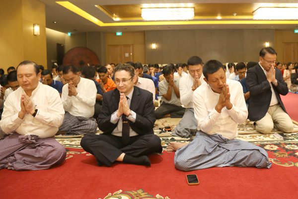 Followed by the staffs pay homage to Founder U Zaw Zaw and the seniors according to Myanmar traditional norms and culture. Then, Founder U Zaw Zaw and Professor Dr. Aung Tun Thet briefed the wishes and remarks to the staffs.